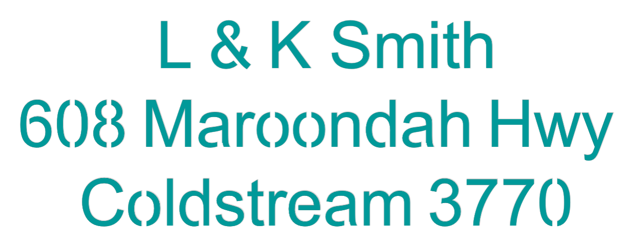 Text: L & K Smith 608 Maroondah Hwy Coldstream 3770