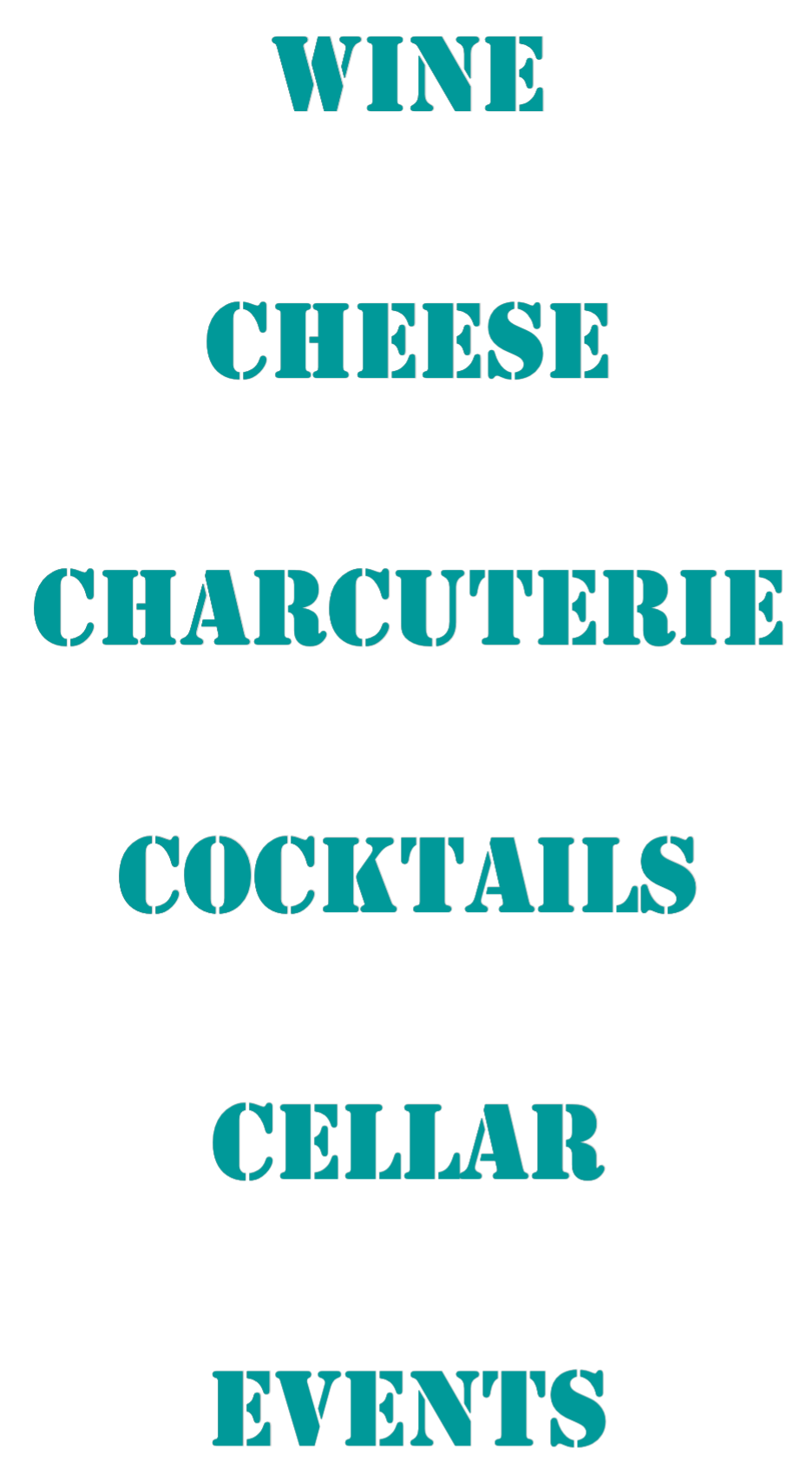 Text: Wine Cheese Charcuterie Cocktails Cellar Events